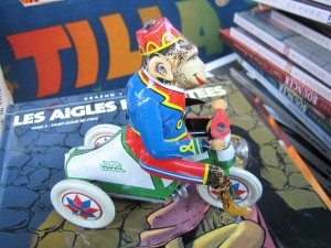 Le cirque est là, avec ces automates, le balayeur, le jongleur et notre singe sur un tricycle.