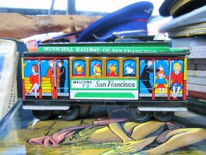 Jouet mécanique réédition, ancien en métal fer blanc Paya Tramway San Francisco.