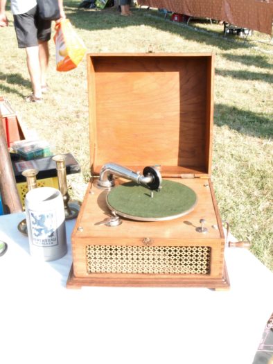 Phonographes et gramophones, toujours présents à cette manifestation du 14 juillet à La Begude de Mazenc.Pavillons et valises, pour le plaisir des yeux, les disques tournent et grésillent, distribuant dans les airs les chansons et de la musique du siècle dernier.