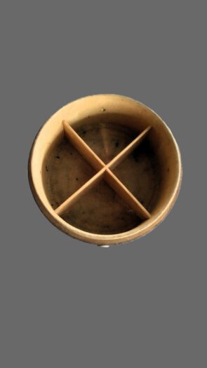 Celle-ci peut recevoir 4 bobines. A l’interieur des petites cloisons en bois fin permettent de les séparer.
